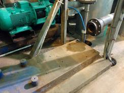 Montage d'une pompe neuve pour le nettoyage des filtres à charbon (on injecte l'eau dans le sens inverse pour décolmater le filtre) |